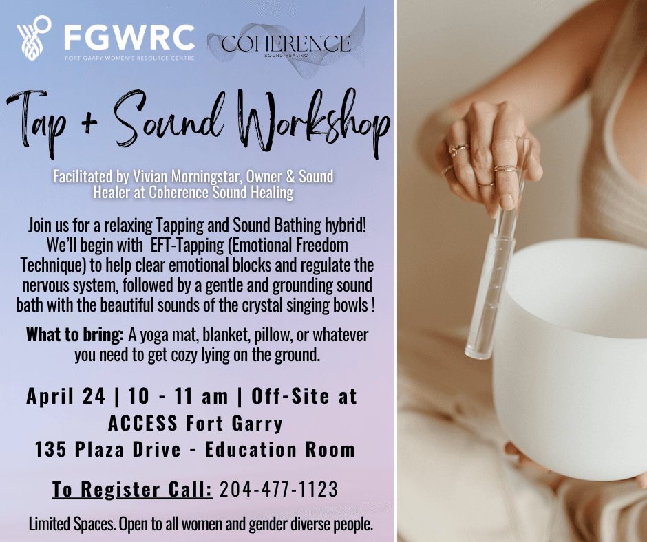 Join us for a relaxing Tapping and Sound Bathing hybrid! We’ll begin with EFT-Tapping (Emotional Freedom Technique) to help clear emotional blocks and regulate the nervous system, followed by a gentle and grounding sound bath with the beautiful sounds of the crystal singing bowls !